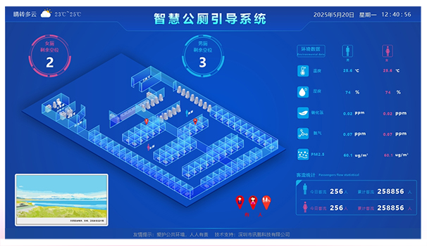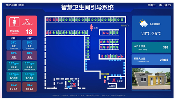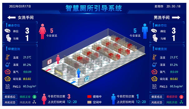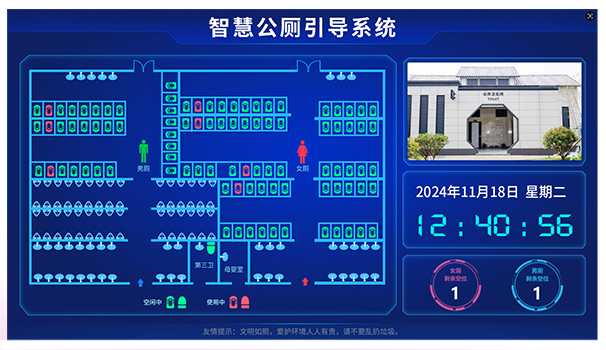 首先從技術層面來看,當前的智慧廁所建設引入了信息通訊、物聯網、互聯網等技術,并利用現代智能控制、傳感傳導等技術,搭建景區智慧廁所解決方案,對廁所內空間平面圖、廁位現狀、實時溫度、濕度、空氣質量等大數據顯示專用智能顯示屏上,引導群眾有序進入如廁。